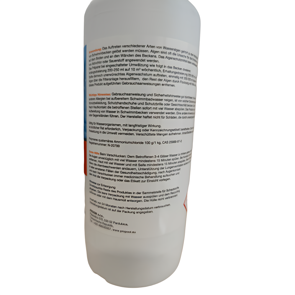 Unser Algenschutzmittel 1L wurde entwickelt, um die Wasserqualität in Ihrem Pool dauerhaft zu erhalten. Es bekämpft effektiv verschiedene Algenarten und sorgt dafür, dass sich unschöne und lästige Algen nicht unkontrolliert vermehren können. Dabei bleibt das Badeerlebnis in Ihrem Pool uneingeschränkt.
