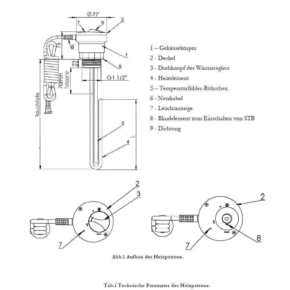 Dank der hochwertigen Verarbeitung aus Edelstahl und robustem Kunststoff ist die Heizpatrone nicht nur langlebig, sondern auch widerstandsfÀhig gegen Korrosion und hohe Temperaturen.