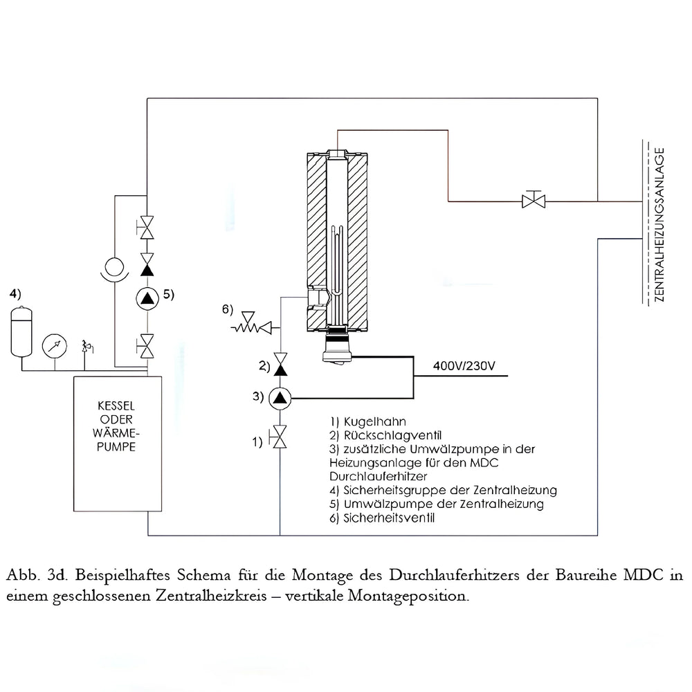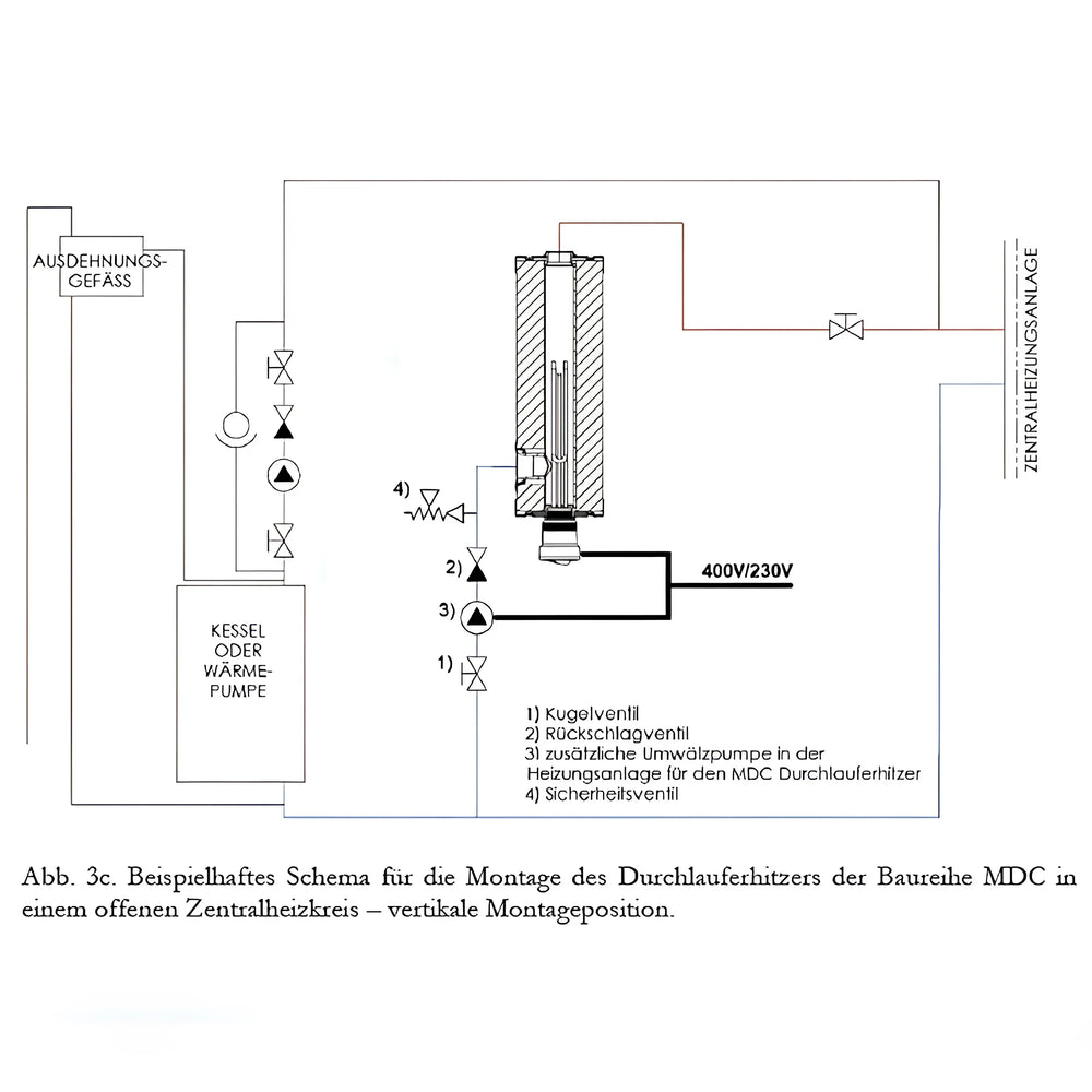 Das Nachheizmodul MDC 320 integriert sich problemlos in offene und geschlossene Heizkreise und kann sowohl zur dauerhaften UnterstĂŒtzung als auch als Notheizung genutzt werden. Es hilft dabei, ĂŒberschĂŒssige Energie effizient einzusetzen, beispielsweise aus Photovoltaikanlagen, um den Heizbedarf zu decken.