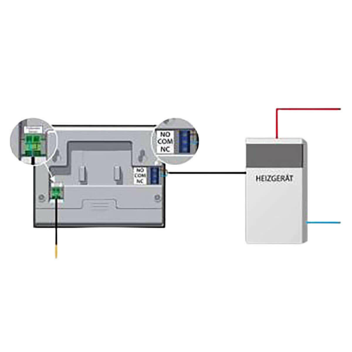 Wall mounting is quick and easy thanks to the surface-mounted design. The controller is connected to the heater via a two-wire cable and can be installed easily, even by professional installers. Power is supplied by two 1.5 V AA batteries, making the device particularly flexible.
