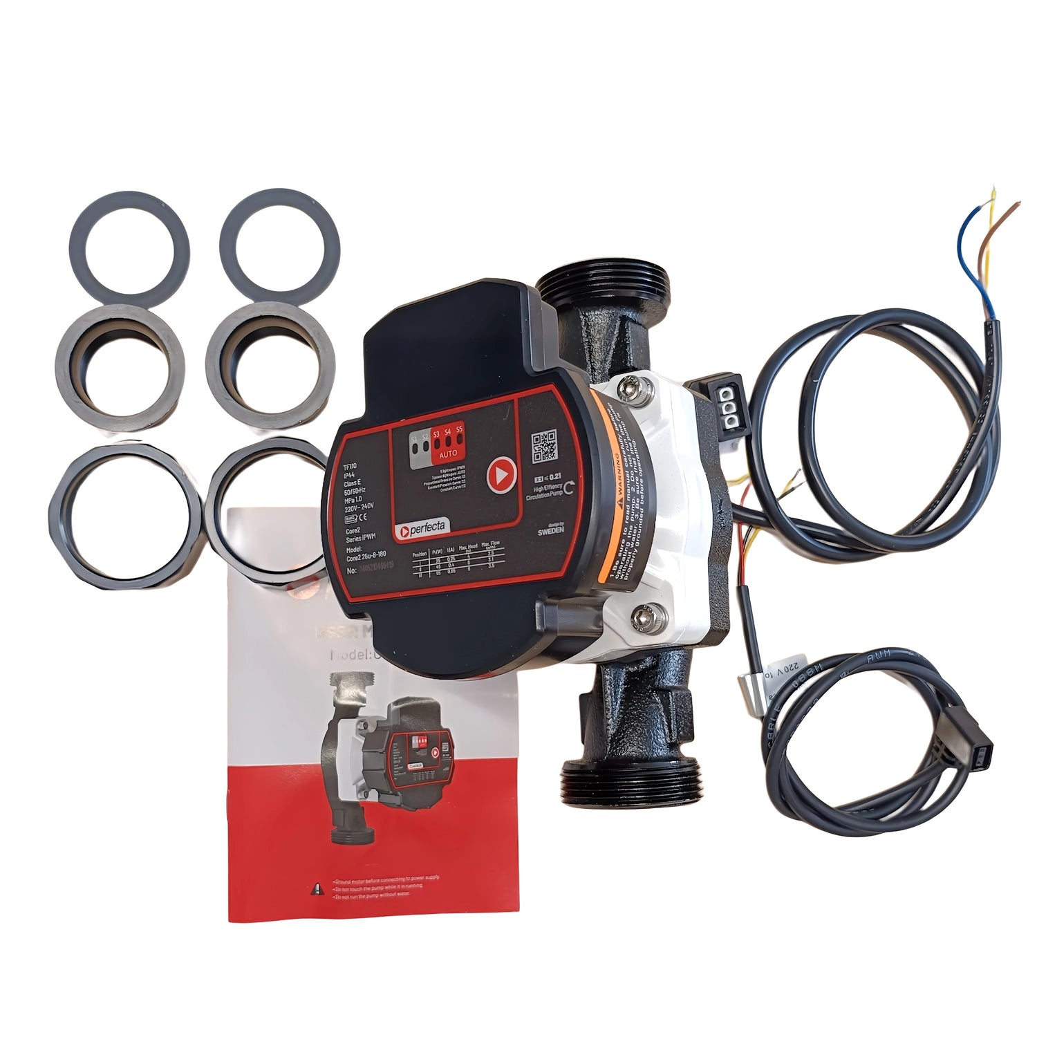 Pump tarnitakse koos kruviühendusega (1" sisekeere ja 1 1/2" ühendusmutter), tihendid, ühenduskork ja kasutusjuhendid – kõik on kiireks kasutuselevõtuks olemas.