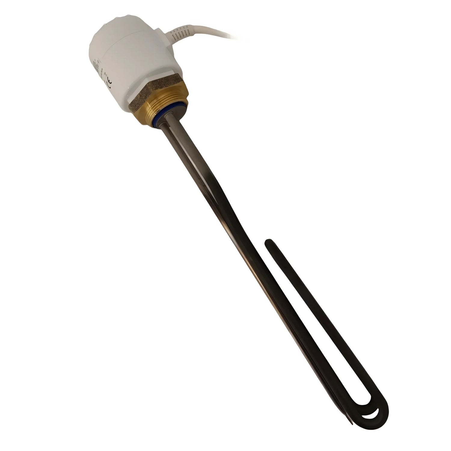 Grijač koji se uvrće sastoji se od robusnog cjevastog grijaćeg elementa montiranog s kapilarnom ovojnicom u glavi s navojem od 1 1/2". Ovaj dizajn osigurava sigurnu i jednostavnu ugradnju. Sam grijaći element izrađen je od Incoloy čelika, koji nudi visoku otpornost na koroziju i kemijske utjecaje. To čini grijač idealnim za zahtjevne primjene i jamči dugi vijek trajanja, čak i pri intenzivnoj upotrebi.