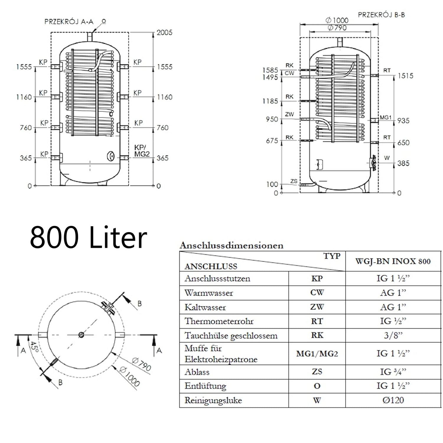 A WGJ-BN INOX egy vízmelegítő puffertartályt és egy integrált használati melegvíz-tárolót kombinál. Belül egy rozsdamentes acél bordáscső hőcserélőként működik, amely nagy érintkezési felületet biztosít a gyors és hatékony hőcseréhez, és lehetővé teszi az azonnali vízmelegítést. A tartály maximális üzemi nyomása 0,3 MPa.