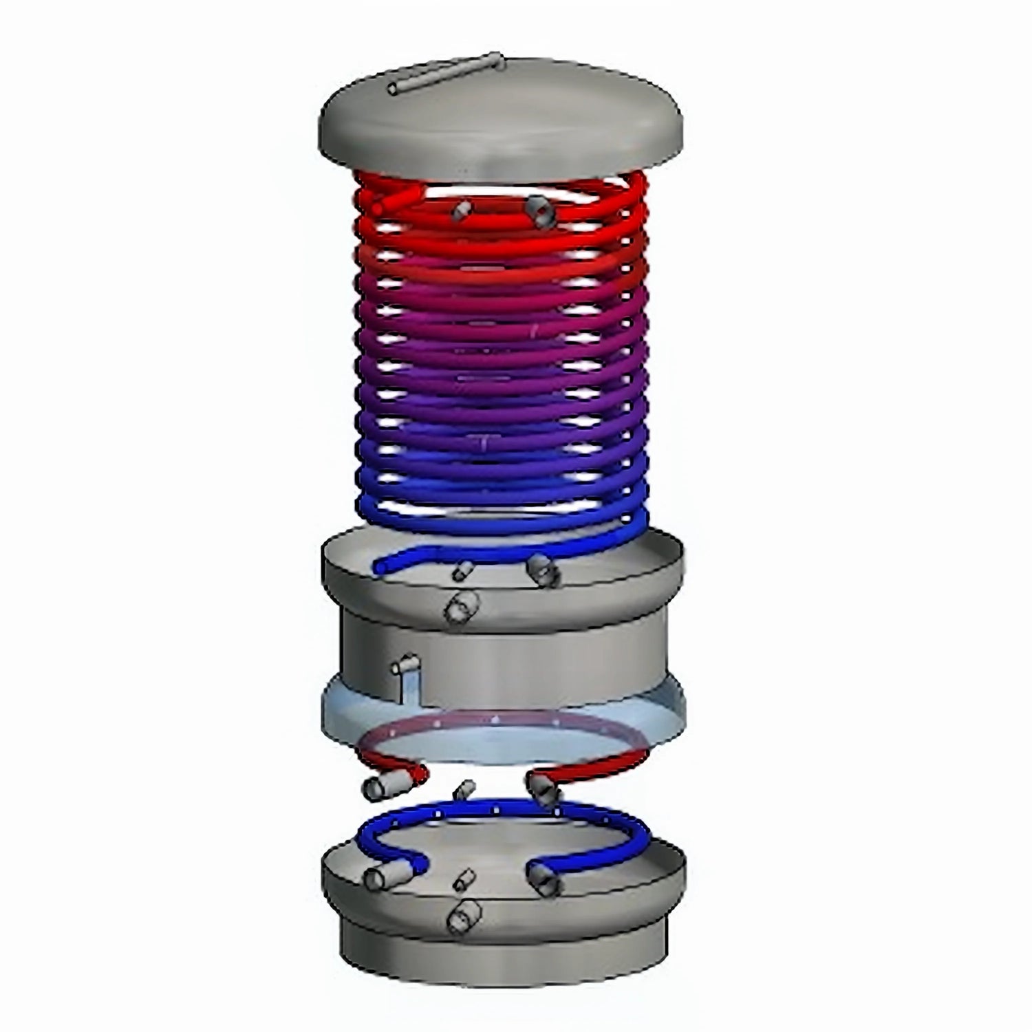 A tárolótartály S235JRG2 minőségű acélból készült a DIN 4753 és az EN 12897 európai szabvány szerint; az ivóvíz hőcserélője egy Németországban gyártott bordázott rozsdamentes acélcső (1.4404). A tartály belül nyers, kívül alapozott, és két termikusan elválasztott részre van osztva: felül a frissvíz-melegítésre, alul pedig a fűtőpufferre.