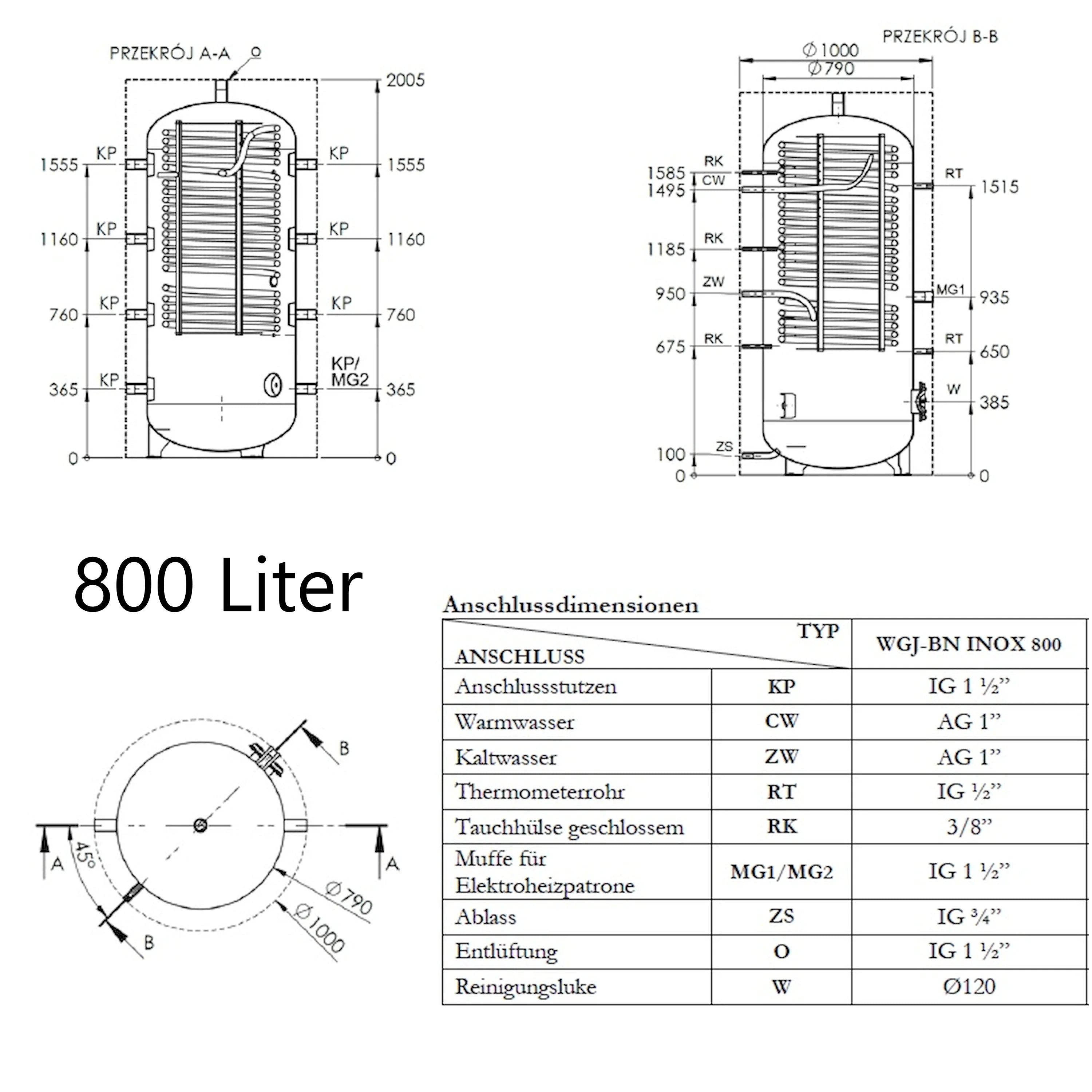 Accumulatore di accumulo per acqua calda sanitaria con riscaldamento WGJ-BN INOX
