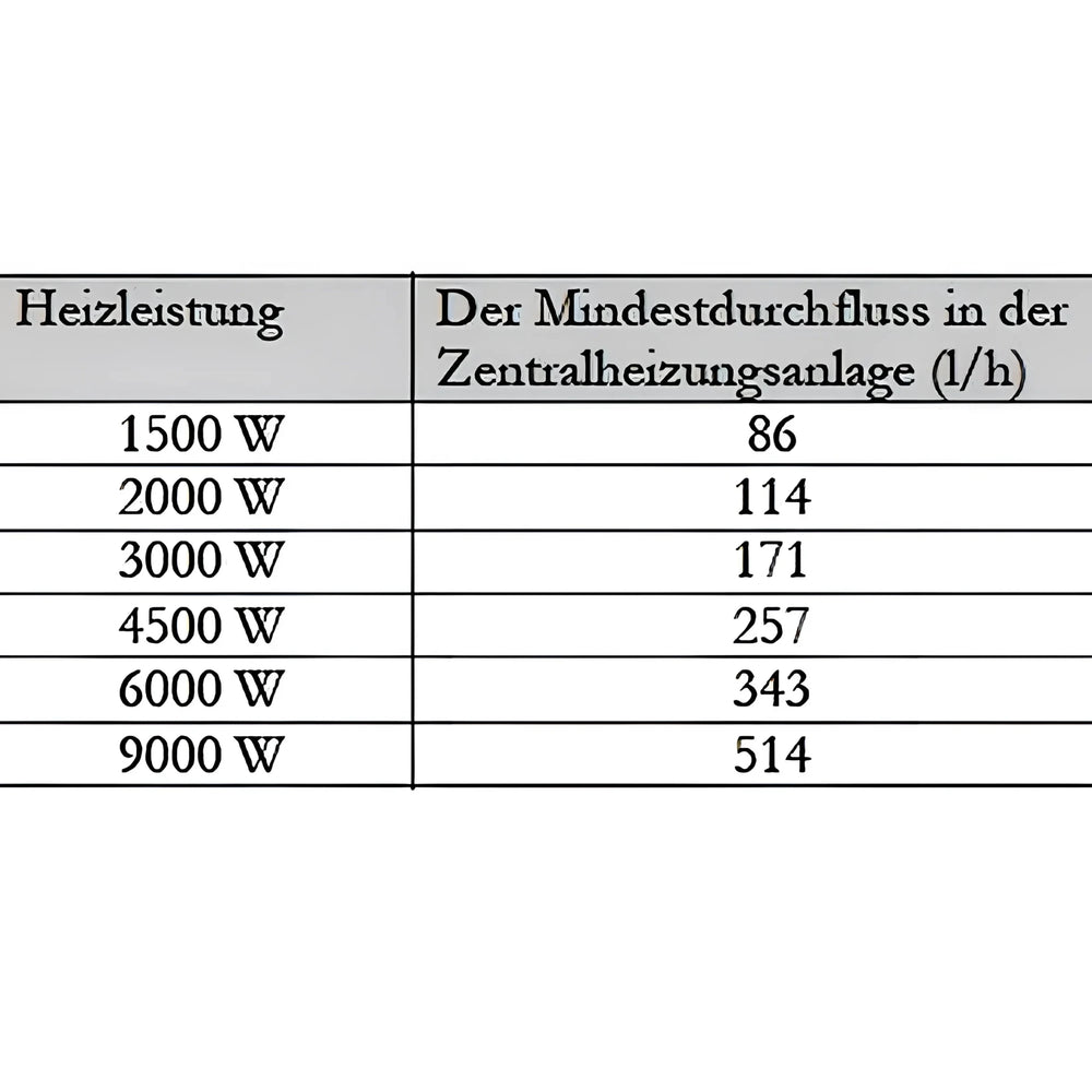 • Minimalus srautas: 9,0 kW/514 l/h