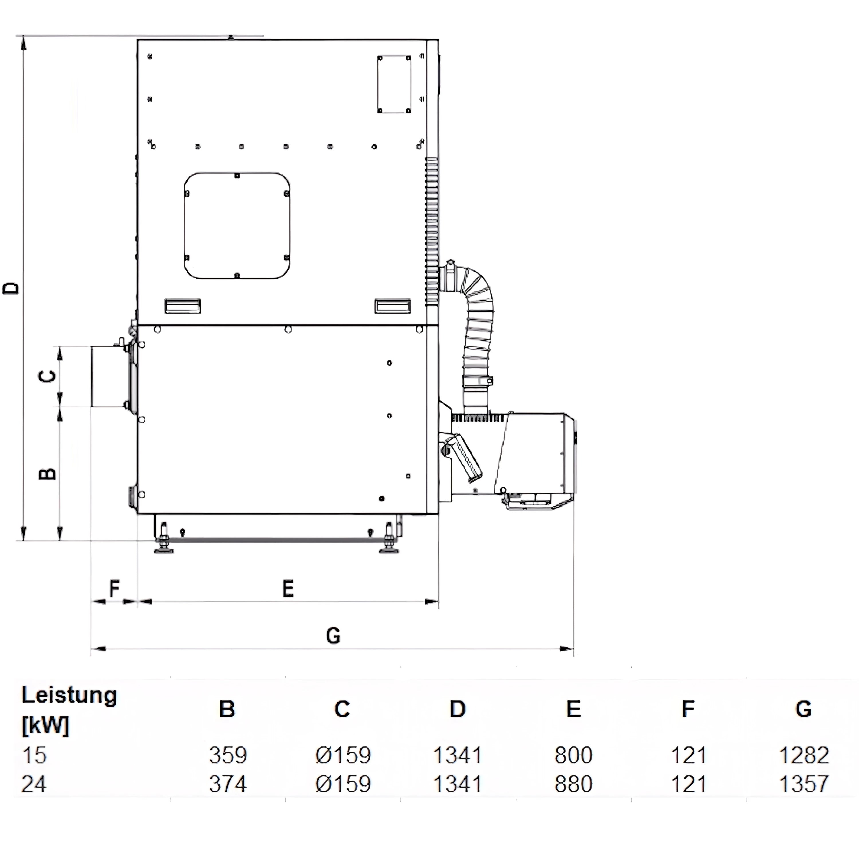Galima vardinė galia: 15 kW ir 24 kW; Apskritai serija apima platų galios diapazoną nuo maždaug. nuo 11 iki 30 kW. Įrenginys atitinka 5 emisijos klasę bei Ekologinio projektavimo standarto reikalavimus ir priskiriamas A+ energijos vartojimo efektyvumo klasei.