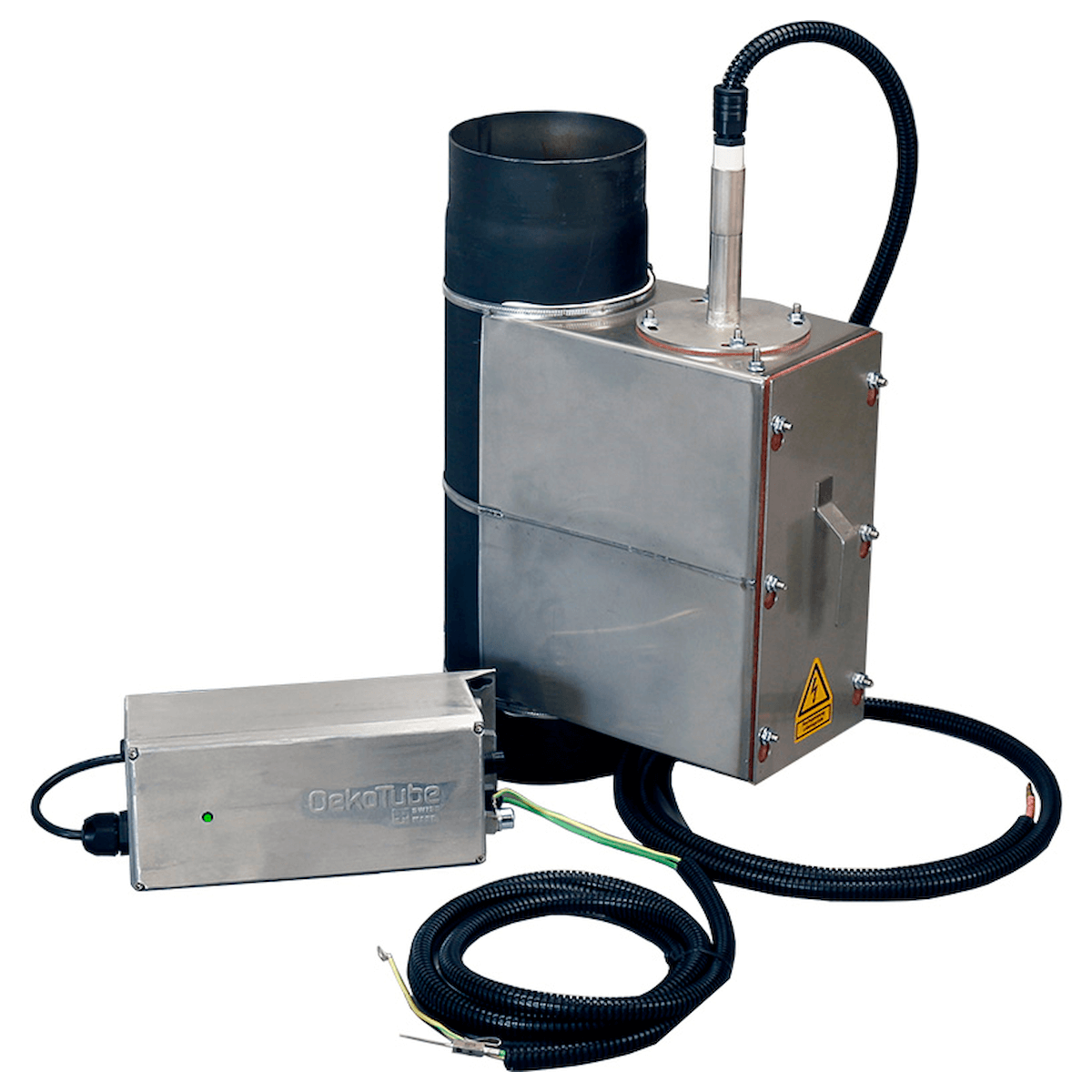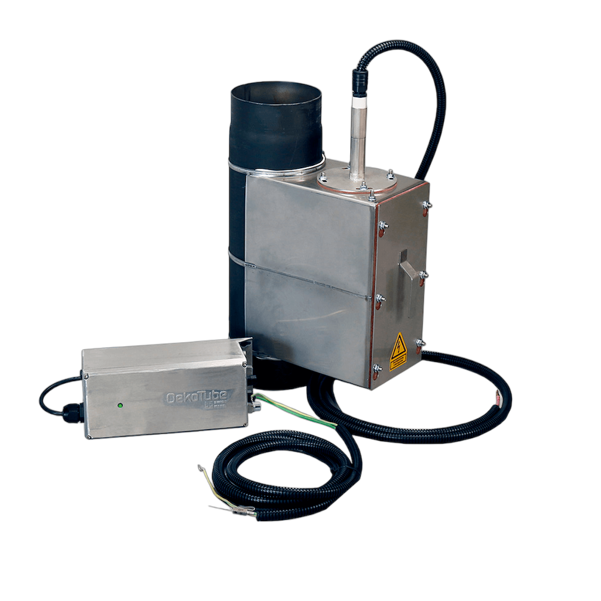 Der OekoTube-Inside ist ein elektrostatischer Partikelabscheider, speziell entwickelt für Holzfeuerungen bis 100 kW. Er wird einfach im Kesselraum zwischen Heizkessel und Kamineintritt installiert und sorgt für eine spürbare Reduktion der Feinstaubemissionen.