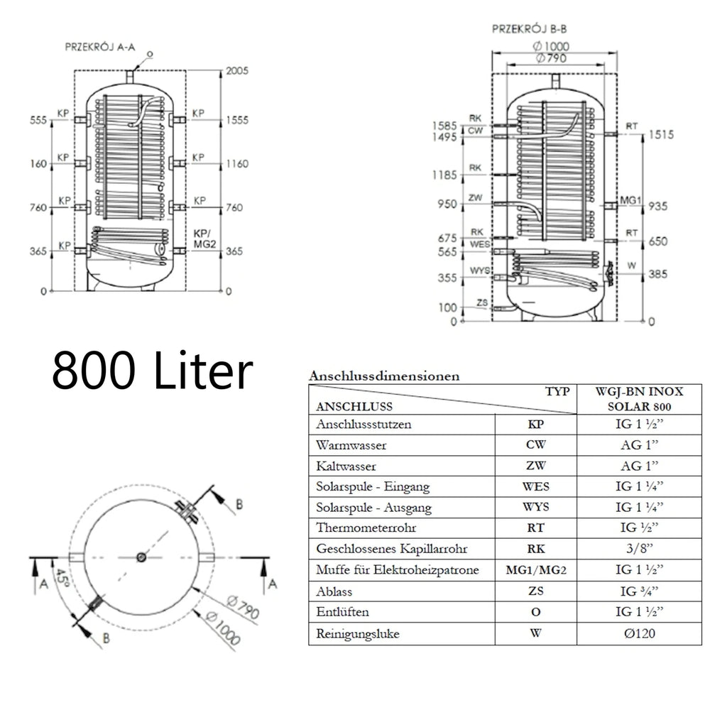 WGJ-BN INOX SOLAR este un rezervor tampon combinat pentru încălzirea apei calde menajere, cu o serpentina de încălzire din oțel inoxidabil integrată ca schimbător de căldură. A fost proiectat pentru integrarea în sisteme de încălzire centrală cu cazane, pompe de căldură sau pentru utilizarea căldurii solare și permite atât stocarea energiei de încălzire, cât și încălzirea continuă a apei potabile.