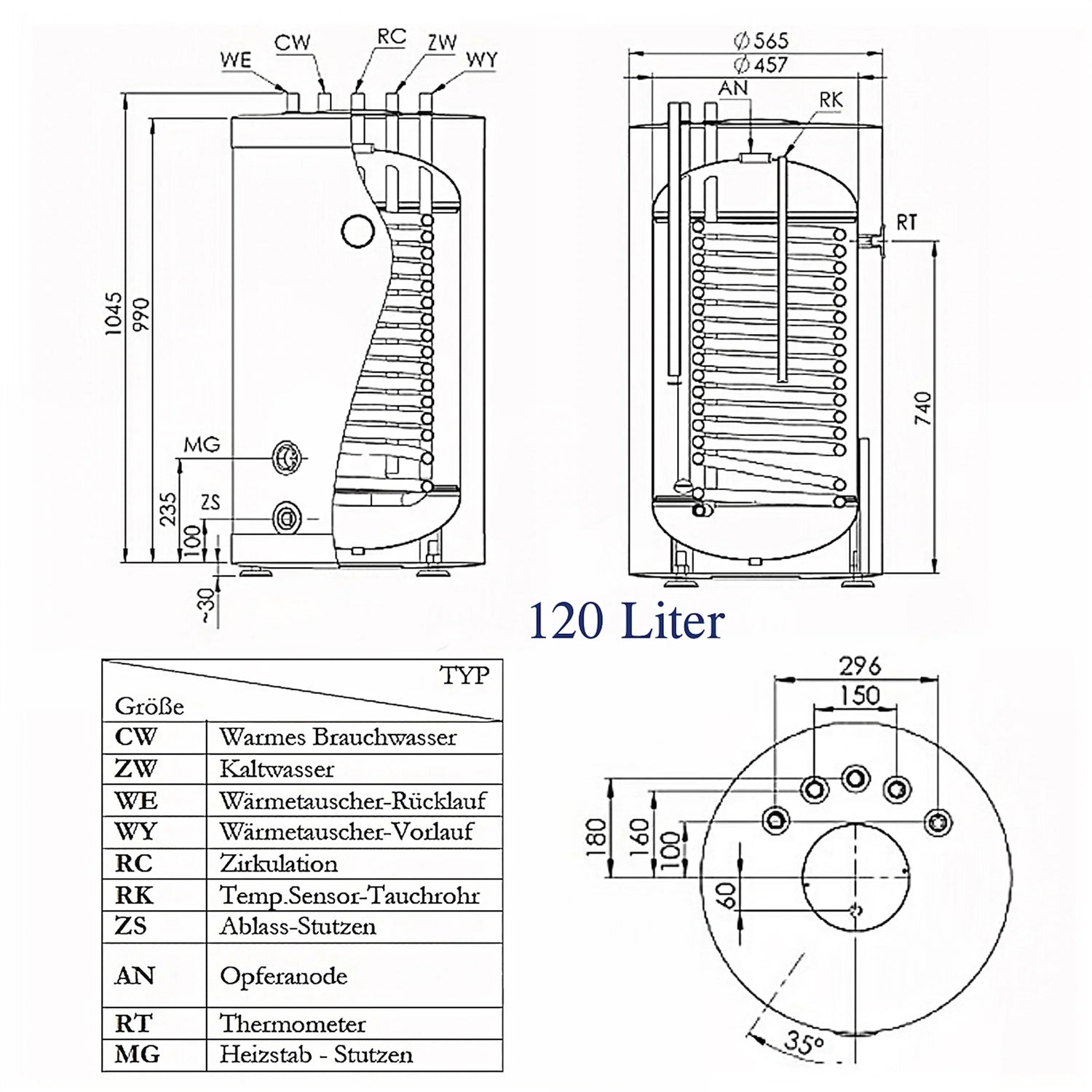 Ten/Tá/To Zásobník teplej vody 100 l, 120 l alebo 150 l s 1 výmenníkom tepla sa používa na centrálny a bezpečný ohrev teplej vody.
