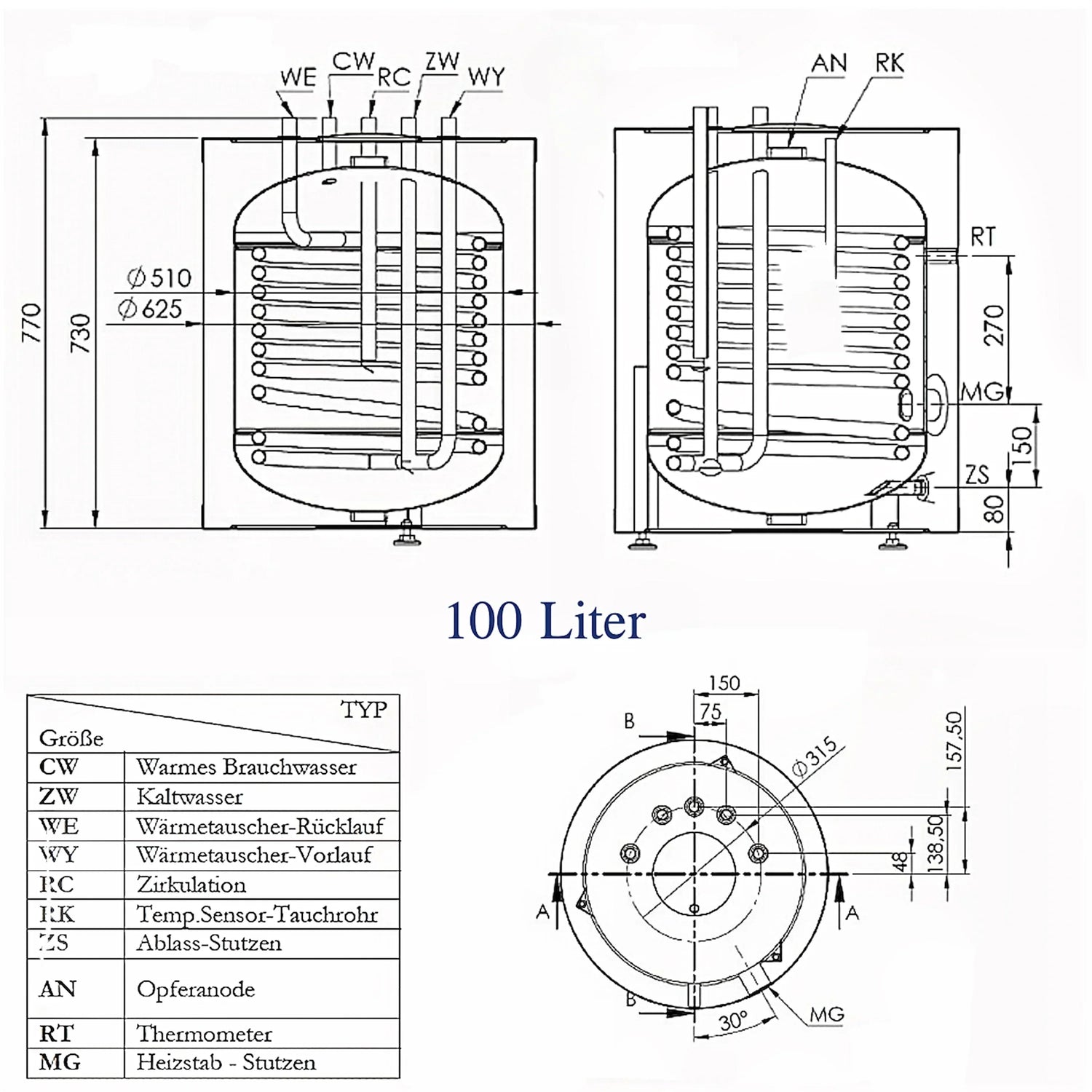 Zásobník teplej vody pre úžitkovú vodu 100 litrov s 1 WT